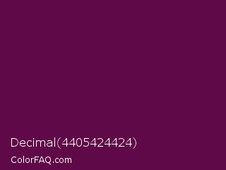 Decimal 4405424424 Color is a very dark magenta color and the nearest color is Pompadour #660045. Hex code #600948 and RGB value is rgb(96,9,72). In RGB color space, this color is composed of 38% red, 4% green, 28% blue, In CMYK color space, this color is composed of 0% cyan, 91% magenta, 25% yellow , 62% black , In HSL color space, this color has a hue angle of 317° , 83% saturation and 21% lightness.