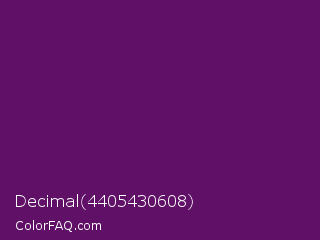 Decimal 4405430608 Color is a dark magenta color and the nearest color is Honey Flower #4f1c70. Hex code #601066 and RGB value is rgb(96,16,102). In RGB color space, this color is composed of 38% red, 6% green, 40% blue, In CMYK color space, this color is composed of 6% cyan, 84% magenta, 0% yellow , 60% black , In HSL color space, this color has a hue angle of 296° , 73% saturation and 23% lightness.