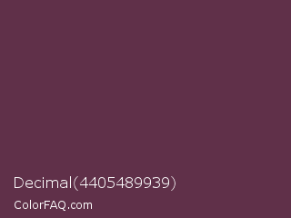 Decimal 4405489939 Color is a dark rose color and the nearest color is Wine Dregs #673147. Hex code #603049 and RGB value is rgb(96,48,73). In RGB color space, this color is composed of 38% red, 19% green, 29% blue, In CMYK color space, this color is composed of 0% cyan, 50% magenta, 24% yellow , 62% black , In HSL color space, this color has a hue angle of 329° , 33% saturation and 28% lightness.