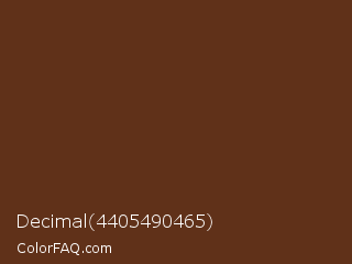 Decimal 4405490465 Color is a dark orange color and the nearest color is Jambalaya #5b3013. Hex code #603119 and RGB value is rgb(96,49,25). In RGB color space, this color is composed of 38% red, 19% green, 10% blue, In CMYK color space, this color is composed of 0% cyan, 49% magenta, 74% yellow , 62% black , In HSL color space, this color has a hue angle of 20° , 59% saturation and 24% lightness.