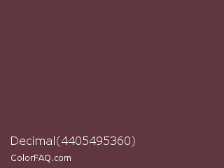 Decimal 4405495360 Color is a dark red color and the nearest color is Wine Dregs #673147. Hex code #603640 and RGB value is rgb(96,54,64). In RGB color space, this color is composed of 38% red, 21% green, 25% blue, In CMYK color space, this color is composed of 0% cyan, 44% magenta, 33% yellow , 62% black , In HSL color space, this color has a hue angle of 346° , 28% saturation and 29% lightness.