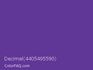 Decimal 4405495590 Color is a normal violet color and the nearest color is Rebecca Purple #663399. Hex code #603696 and RGB value is rgb(96,54,150). In RGB color space, this color is composed of 38% red, 21% green, 59% blue, In CMYK color space, this color is composed of 36% cyan, 64% magenta, 0% yellow , 41% black , In HSL color space, this color has a hue angle of 266° , 47% saturation and 40% lightness.