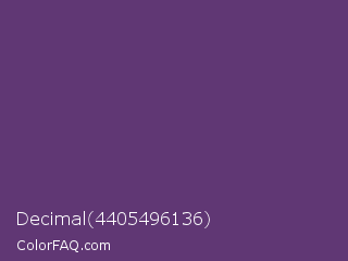 Decimal 4405496136 Color is a normal purple color and the nearest color is Imperial #602f6b. Hex code #603774 and RGB value is rgb(96,55,116). In RGB color space, this color is composed of 38% red, 22% green, 45% blue, In CMYK color space, this color is composed of 17% cyan, 53% magenta, 0% yellow , 55% black , In HSL color space, this color has a hue angle of 280° , 36% saturation and 34% lightness.