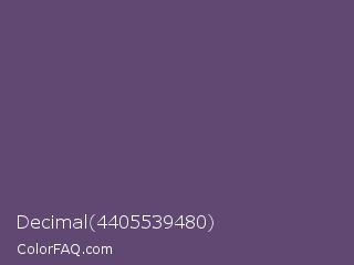 Decimal 4405539480 Color is a normal purple color and the nearest color is Cyber Grape #58427c. Hex code #604872 and RGB value is rgb(96,72,114). In RGB color space, this color is composed of 38% red, 28% green, 45% blue, In CMYK color space, this color is composed of 16% cyan, 37% magenta, 0% yellow , 55% black , In HSL color space, this color has a hue angle of 274° , 23% saturation and 36% lightness.