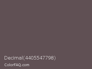 Decimal 4405547798 Color is a normal red color and the nearest color is Don Juan #5d4c51. Hex code #605054 and RGB value is rgb(96,80,84). In RGB color space, this color is composed of 38% red, 31% green, 33% blue, In CMYK color space, this color is composed of 0% cyan, 17% magenta, 13% yellow , 62% black , In HSL color space, this color has a hue angle of 345° , 9% saturation and 35% lightness.
