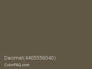 Decimal 4405556040 Color is a normal orange color and the nearest color is Umber #635147. Hex code #605844 and RGB value is rgb(96,88,68). In RGB color space, this color is composed of 38% red, 35% green, 27% blue, In CMYK color space, this color is composed of 0% cyan, 8% magenta, 29% yellow , 62% black , In HSL color space, this color has a hue angle of 43° , 17% saturation and 32% lightness.