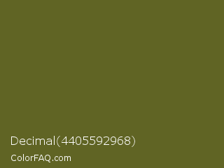 Decimal 4405592968 Color is a dark yellow color and the nearest color is Antique Bronze #665d1e. Hex code #606424 and RGB value is rgb(96,100,36). In RGB color space, this color is composed of 38% red, 39% green, 14% blue, In CMYK color space, this color is composed of 4% cyan, 0% magenta, 64% yellow , 61% black , In HSL color space, this color has a hue angle of 64° , 47% saturation and 27% lightness.