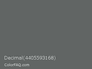 Decimal 4405593168 Color is a normal green color and the nearest color is Storm Dust #646463. Hex code #606462 and RGB value is rgb(96,100,98). In RGB color space, this color is composed of 38% red, 39% green, 38% blue, In CMYK color space, this color is composed of 4% cyan, 0% magenta, 2% yellow , 61% black , In HSL color space, this color has a hue angle of 150° , 2% saturation and 38% lightness.