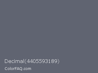 Decimal 4405593189 Color is a normal blue color and the nearest color is Shuttle Gray #5f6672. Hex code #606471 and RGB value is rgb(96,100,113). In RGB color space, this color is composed of 38% red, 39% green, 44% blue, In CMYK color space, this color is composed of 15% cyan, 12% magenta, 0% yellow , 56% black , In HSL color space, this color has a hue angle of 226° , 8% saturation and 41% lightness.