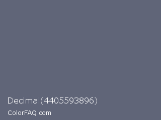 Decimal 4405593896 Color is a normal blue color and the nearest color is Shuttle Gray #5f6672. Hex code #606578 and RGB value is rgb(96,101,120). In RGB color space, this color is composed of 38% red, 40% green, 47% blue, In CMYK color space, this color is composed of 20% cyan, 16% magenta, 0% yellow , 53% black , In HSL color space, this color has a hue angle of 228° , 11% saturation and 42% lightness.