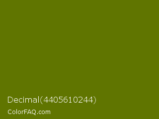 Decimal 4405610244 Color is a dark lime color and the nearest color is Avocado #568203. Hex code #607500 and RGB value is rgb(96,117,0). In RGB color space, this color is composed of 38% red, 46% green, 0% blue, In CMYK color space, this color is composed of 18% cyan, 0% magenta, 100% yellow , 54% black , In HSL color space, this color has a hue angle of 71° , 100% saturation and 23% lightness.