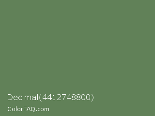 Decimal 4412748800 Color is a normal green color and the nearest color is Glade Green #61845f. Hex code #618158 and RGB value is rgb(97,129,88). In RGB color space, this color is composed of 38% red, 51% green, 35% blue, In CMYK color space, this color is composed of 25% cyan, 0% magenta, 32% yellow , 49% black , In HSL color space, this color has a hue angle of 107° , 19% saturation and 43% lightness.