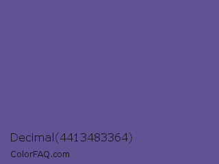 Decimal 4413483364 Color is a normal indigo color and the nearest color is Butterfly Bush #624e9a. Hex code #625294 and RGB value is rgb(98,82,148). In RGB color space, this color is composed of 38% red, 32% green, 58% blue, In CMYK color space, this color is composed of 34% cyan, 45% magenta, 0% yellow , 42% black , In HSL color space, this color has a hue angle of 255° , 29% saturation and 45% lightness.