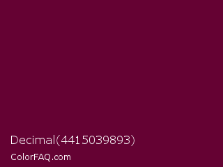 Decimal 4415039893 Color is a very dark rose color and the nearest color is Black Rose #67032d. Hex code #650233 and RGB value is rgb(101,2,51). In RGB color space, this color is composed of 40% red, 1% green, 20% blue, In CMYK color space, this color is composed of 0% cyan, 98% magenta, 50% yellow , 60% black , In HSL color space, this color has a hue angle of 330° , 96% saturation and 20% lightness.