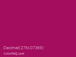 Decimal 276107369 Color is a normal rose color and the nearest color is Jazzberry Jam #a50b5e. Hex code #a40c5d and RGB value is rgb(164,12,93). In RGB color space, this color is composed of 64% red, 5% green, 36% blue, In CMYK color space, this color is composed of 0% cyan, 93% magenta, 43% yellow , 36% black , In HSL color space, this color has a hue angle of 328° , 86% saturation and 35% lightness.
