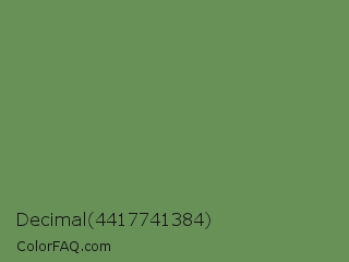 Decimal 4417741384 Color is a normal green color and the nearest color is Highland #6f8e63. Hex code #689158 and RGB value is rgb(104,145,88). In RGB color space, this color is composed of 41% red, 57% green, 35% blue, In CMYK color space, this color is composed of 28% cyan, 0% magenta, 39% yellow , 43% black , In HSL color space, this color has a hue angle of 103° , 24% saturation and 46% lightness.