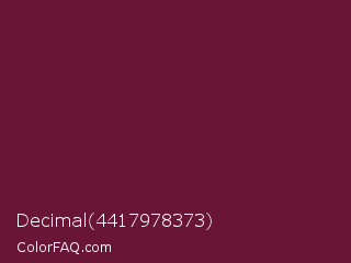 Decimal 4417978373 Color is a dark rose color and the nearest color is Wine Berry #591d35. Hex code #691535 and RGB value is rgb(105,21,53). In RGB color space, this color is composed of 41% red, 8% green, 21% blue, In CMYK color space, this color is composed of 0% cyan, 80% magenta, 50% yellow , 59% black , In HSL color space, this color has a hue angle of 337° , 67% saturation and 25% lightness.