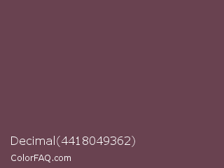 Decimal 4418049362 Color is a normal rose color and the nearest color is Deep Tuscan Red #66424d. Hex code #694250 and RGB value is rgb(105,66,80). In RGB color space, this color is composed of 41% red, 26% green, 31% blue, In CMYK color space, this color is composed of 0% cyan, 37% magenta, 24% yellow , 59% black , In HSL color space, this color has a hue angle of 338° , 23% saturation and 34% lightness.