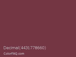 Decimal 4431778660 Color is a normal red color and the nearest color is Catawba #703642. Hex code #743644 and RGB value is rgb(116,54,68). In RGB color space, this color is composed of 45% red, 21% green, 27% blue, In CMYK color space, this color is composed of 0% cyan, 53% magenta, 41% yellow , 55% black , In HSL color space, this color has a hue angle of 346° , 36% saturation and 33% lightness.