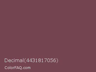 Decimal 4431817056 Color is a normal red color and the nearest color is Ferra #704f50. Hex code #744450 and RGB value is rgb(116,68,80). In RGB color space, this color is composed of 45% red, 27% green, 31% blue, In CMYK color space, this color is composed of 0% cyan, 41% magenta, 31% yellow , 55% black , In HSL color space, this color has a hue angle of 345° , 26% saturation and 36% lightness.