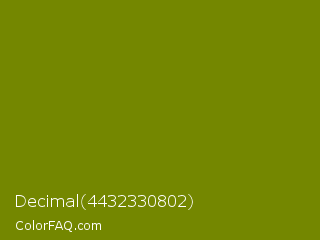 Decimal 4432330802 Color is a dark yellow color and the nearest color is Olive #808000. Hex code #748700 and RGB value is rgb(116,135,0). In RGB color space, this color is composed of 45% red, 53% green, 0% blue, In CMYK color space, this color is composed of 14% cyan, 0% magenta, 100% yellow , 47% black , In HSL color space, this color has a hue angle of 68° , 100% saturation and 26% lightness.