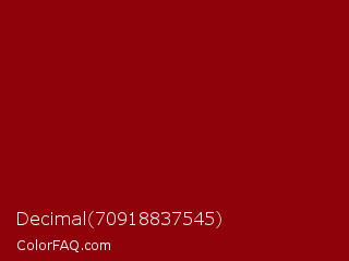 Decimal 70918837545 Color is a dark red color and the nearest color is Sangria #92000a. Hex code #900209 and RGB value is rgb(144,2,9). In RGB color space, this color is composed of 56% red, 1% green, 4% blue, In CMYK color space, this color is composed of 0% cyan, 99% magenta, 94% yellow , 44% black , In HSL color space, this color has a hue angle of 357° , 97% saturation and 29% lightness.