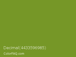 Decimal 4433596985 Color is a normal lime color and the nearest color is Wasabi #788a25. Hex code #769727 and RGB value is rgb(118,151,39). In RGB color space, this color is composed of 46% red, 59% green, 15% blue, In CMYK color space, this color is composed of 22% cyan, 0% magenta, 74% yellow , 41% black , In HSL color space, this color has a hue angle of 78° , 59% saturation and 37% lightness.