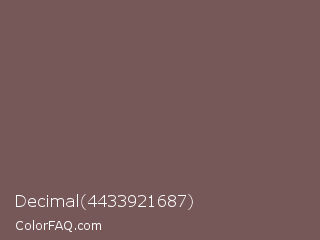 Decimal 4433921687 Color is a normal red color and the nearest color is Russett #755a57. Hex code #775859 and RGB value is rgb(119,88,89). In RGB color space, this color is composed of 47% red, 35% green, 35% blue, In CMYK color space, this color is composed of 0% cyan, 26% magenta, 25% yellow , 53% black , In HSL color space, this color has a hue angle of 358° , 15% saturation and 41% lightness.
