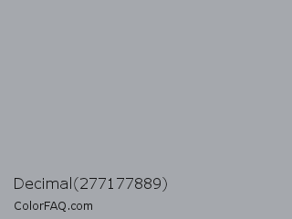 Decimal 277177889 Color is a light blue color and the nearest color is Dark Medium Gray #a9a9a9. Hex code #a5a8ad and RGB value is rgb(165,168,173). In RGB color space, this color is composed of 65% red, 66% green, 68% blue, In CMYK color space, this color is composed of 5% cyan, 3% magenta, 0% yellow , 32% black , In HSL color space, this color has a hue angle of 218° , 5% saturation and 66% lightness.