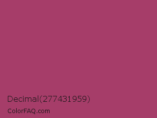 Decimal 277431959 Color is a normal rose color and the nearest color is Medium Ruby #aa4069. Hex code #a63d69 and RGB value is rgb(166,61,105). In RGB color space, this color is composed of 65% red, 24% green, 41% blue, In CMYK color space, this color is composed of 0% cyan, 63% magenta, 37% yellow , 35% black , In HSL color space, this color has a hue angle of 335° , 46% saturation and 45% lightness.