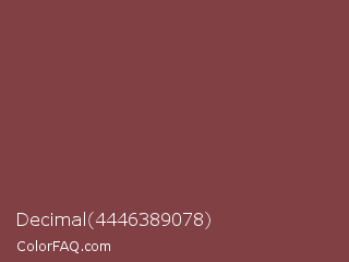 Decimal 4446389078 Color is a normal red color and the nearest color is Cordovan #893f45. Hex code #804044 and RGB value is rgb(128,64,68). In RGB color space, this color is composed of 50% red, 25% green, 27% blue, In CMYK color space, this color is composed of 0% cyan, 50% magenta, 47% yellow , 50% black , In HSL color space, this color has a hue angle of 356° , 33% saturation and 38% lightness.