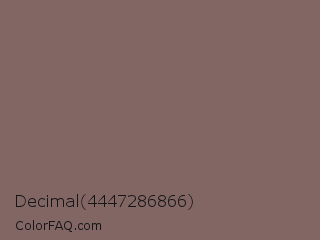 Decimal 4447286866 Color is a normal red color and the nearest color is Sand Dune #826f65. Hex code #816664 and RGB value is rgb(129,102,100). In RGB color space, this color is composed of 51% red, 40% green, 39% blue, In CMYK color space, this color is composed of 0% cyan, 21% magenta, 22% yellow , 49% black , In HSL color space, this color has a hue angle of 4° , 13% saturation and 45% lightness.