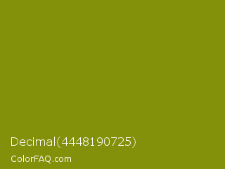 Decimal 4448190725 Color is a dark yellow color and the nearest color is Olive #808000. Hex code #829109 and RGB value is rgb(130,145,9). In RGB color space, this color is composed of 51% red, 57% green, 4% blue, In CMYK color space, this color is composed of 10% cyan, 0% magenta, 94% yellow , 43% black , In HSL color space, this color has a hue angle of 67° , 88% saturation and 30% lightness.