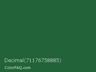 Decimal 71176758885 Color is a dark green color and the nearest color is Green Pea #1d6142. Hex code #226339 and RGB value is rgb(34,99,57). In RGB color space, this color is composed of 13% red, 39% green, 22% blue, In CMYK color space, this color is composed of 66% cyan, 0% magenta, 42% yellow , 61% black , In HSL color space, this color has a hue angle of 141° , 49% saturation and 26% lightness.