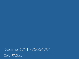 Decimal 71177565479 Color is a normal blue color and the nearest color is Lapis Lazuli #26619c. Hex code #236097 and RGB value is rgb(35,96,151). In RGB color space, this color is composed of 14% red, 38% green, 59% blue, In CMYK color space, this color is composed of 77% cyan, 36% magenta, 0% yellow , 41% black , In HSL color space, this color has a hue angle of 208° , 62% saturation and 36% lightness.