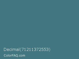 Decimal 71211372553 Color is a normal cyan color and the nearest color is Bismark #497183. Hex code #427781 and RGB value is rgb(66,119,129). In RGB color space, this color is composed of 26% red, 47% green, 51% blue, In CMYK color space, this color is composed of 49% cyan, 8% magenta, 0% yellow , 49% black , In HSL color space, this color has a hue angle of 190° , 32% saturation and 38% lightness.