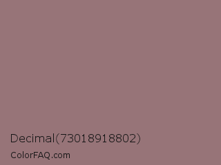 Decimal 73018918802 Color is a normal red color and the nearest color is Bazaar #98777b. Hex code #977478 and RGB value is rgb(151,116,120). In RGB color space, this color is composed of 59% red, 45% green, 47% blue, In CMYK color space, this color is composed of 0% cyan, 23% magenta, 21% yellow , 41% black , In HSL color space, this color has a hue angle of 353° , 14% saturation and 52% lightness.
