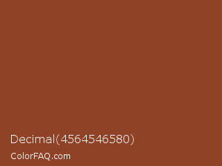Decimal 4564546580 Color is a normal orange color and the nearest color is Cumin #924321. Hex code #904226 and RGB value is rgb(144,66,38). In RGB color space, this color is composed of 56% red, 26% green, 15% blue, In CMYK color space, this color is composed of 0% cyan, 54% magenta, 74% yellow , 44% black , In HSL color space, this color has a hue angle of 16° , 58% saturation and 36% lightness.
