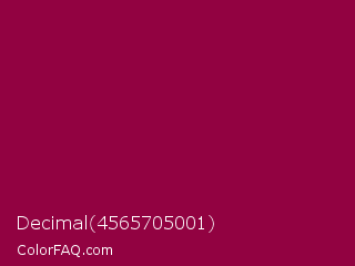 Decimal 4565705001 Color is a dark rose color and the nearest color is Pink Raspberry #980036. Hex code #920241 and RGB value is rgb(146,2,65). In RGB color space, this color is composed of 57% red, 1% green, 25% blue, In CMYK color space, this color is composed of 0% cyan, 99% magenta, 55% yellow , 43% black , In HSL color space, this color has a hue angle of 334° , 97% saturation and 29% lightness.