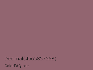 Decimal 4565857568 Color is a normal red color and the nearest color is Mauve Taupe #915f6d. Hex code #926570 and RGB value is rgb(146,101,112). In RGB color space, this color is composed of 57% red, 40% green, 44% blue, In CMYK color space, this color is composed of 0% cyan, 31% magenta, 23% yellow , 43% black , In HSL color space, this color has a hue angle of 345° , 18% saturation and 48% lightness.