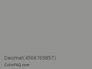 Decimal 4566765857 Color is a normal green color and the nearest color is Mountain Mist #959396. Hex code #939491 and RGB value is rgb(147,148,145). In RGB color space, this color is composed of 58% red, 58% green, 57% blue, In CMYK color space, this color is composed of 1% cyan, 0% magenta, 2% yellow , 42% black , In HSL color space, this color has a hue angle of 80° , 1% saturation and 57% lightness.