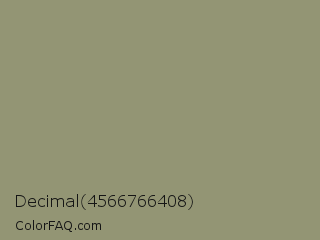 Decimal 4566766408 Color is a normal yellow color and the nearest color is Artichoke #8f9779. Hex code #939574 and RGB value is rgb(147,149,116). In RGB color space, this color is composed of 58% red, 58% green, 45% blue, In CMYK color space, this color is composed of 1% cyan, 0% magenta, 22% yellow , 42% black , In HSL color space, this color has a hue angle of 64° , 13% saturation and 52% lightness.