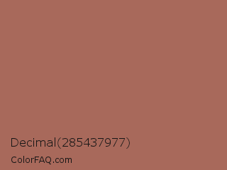 Decimal 285437977 Color is a normal red color and the nearest color is Blast Off Bronze #a57164. Hex code #a8695b and RGB value is rgb(168,105,91). In RGB color space, this color is composed of 66% red, 41% green, 36% blue, In CMYK color space, this color is composed of 0% cyan, 38% magenta, 46% yellow , 34% black , In HSL color space, this color has a hue angle of 11° , 31% saturation and 51% lightness.