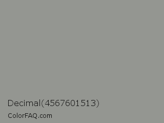 Decimal 4567601513 Color is a normal green color and the nearest color is Mountain Mist #959396. Hex code #949691 and RGB value is rgb(148,150,145). In RGB color space, this color is composed of 58% red, 59% green, 57% blue, In CMYK color space, this color is composed of 1% cyan, 0% magenta, 3% yellow , 41% black , In HSL color space, this color has a hue angle of 84° , 2% saturation and 58% lightness.
