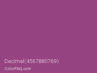 Decimal 4567880769 Color is a normal magenta color and the nearest color is Plum #8e4585. Hex code #954381 and RGB value is rgb(149,67,129). In RGB color space, this color is composed of 58% red, 26% green, 51% blue, In CMYK color space, this color is composed of 0% cyan, 55% magenta, 13% yellow , 42% black , In HSL color space, this color has a hue angle of 315° , 38% saturation and 42% lightness.