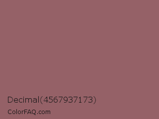 Decimal 4567937173 Color is a normal red color and the nearest color is Copper Rose #996666. Hex code #956167 and RGB value is rgb(149,97,103). In RGB color space, this color is composed of 58% red, 38% green, 40% blue, In CMYK color space, this color is composed of 0% cyan, 35% magenta, 31% yellow , 42% black , In HSL color space, this color has a hue angle of 353° , 21% saturation and 48% lightness.