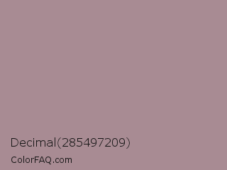 Decimal 285497209 Color is a normal rose color and the nearest color is English Lavender #b48395. Hex code #a88b93 and RGB value is rgb(168,139,147). In RGB color space, this color is composed of 66% red, 55% green, 58% blue, In CMYK color space, this color is composed of 0% cyan, 17% magenta, 13% yellow , 34% black , In HSL color space, this color has a hue angle of 343° , 14% saturation and 60% lightness.