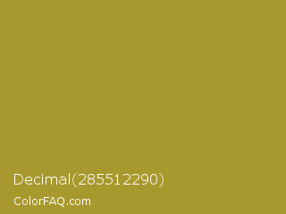 Decimal 285512290 Color is a normal yellow color and the nearest color is Alpine #af8f2c. Hex code #a8992e and RGB value is rgb(168,153,46). In RGB color space, this color is composed of 66% red, 60% green, 18% blue, In CMYK color space, this color is composed of 0% cyan, 9% magenta, 73% yellow , 34% black , In HSL color space, this color has a hue angle of 53° , 57% saturation and 42% lightness.