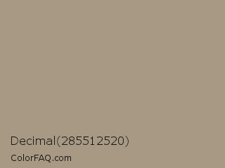 Decimal 285512520 Color is a normal orange color and the nearest color is Grullo #a99a86. Hex code #a89984 and RGB value is rgb(168,153,132). In RGB color space, this color is composed of 66% red, 60% green, 52% blue, In CMYK color space, this color is composed of 0% cyan, 9% magenta, 21% yellow , 34% black , In HSL color space, this color has a hue angle of 35° , 17% saturation and 59% lightness.