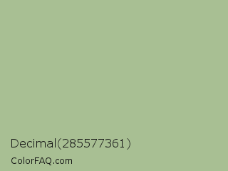 Decimal 285577361 Color is a light green color and the nearest color is Swamp Green #acb78e. Hex code #a8bf93 and RGB value is rgb(168,191,147). In RGB color space, this color is composed of 66% red, 75% green, 58% blue, In CMYK color space, this color is composed of 12% cyan, 0% magenta, 23% yellow , 25% black , In HSL color space, this color has a hue angle of 91° , 26% saturation and 66% lightness.